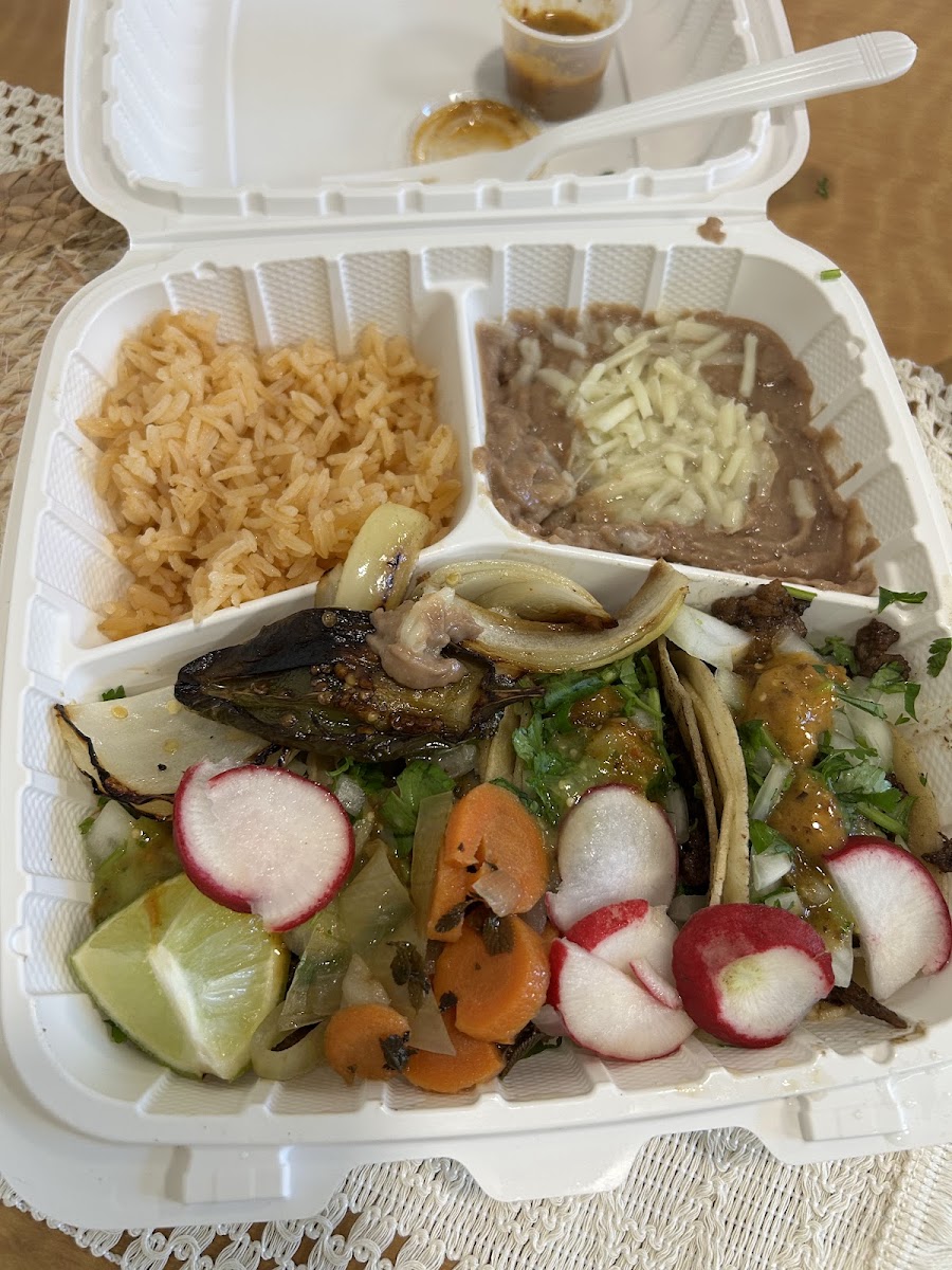Served with your meat, refried beans, mexican rice, salsa, sour cream, guacamole & pico de gallo.